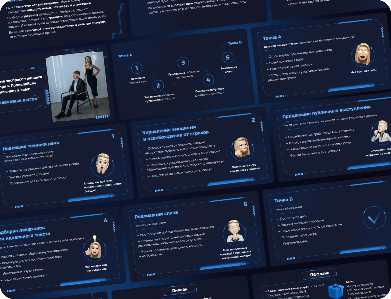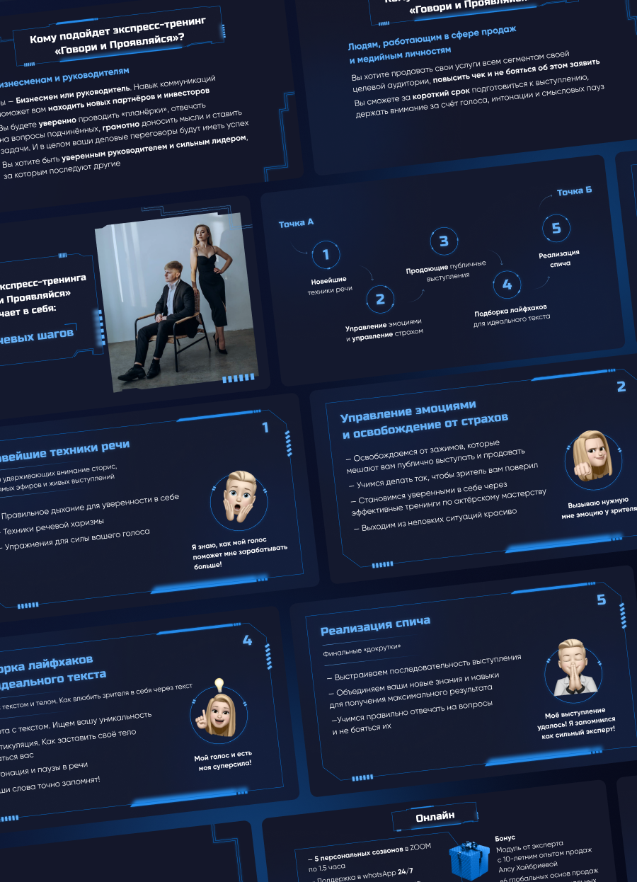 — Разработка концепции для презентации — Анализ целевой аудитории и конкурентов — Разработка дизайн презентаций — 2 бесплатных пакета правок, — Создание структуры и текстов.